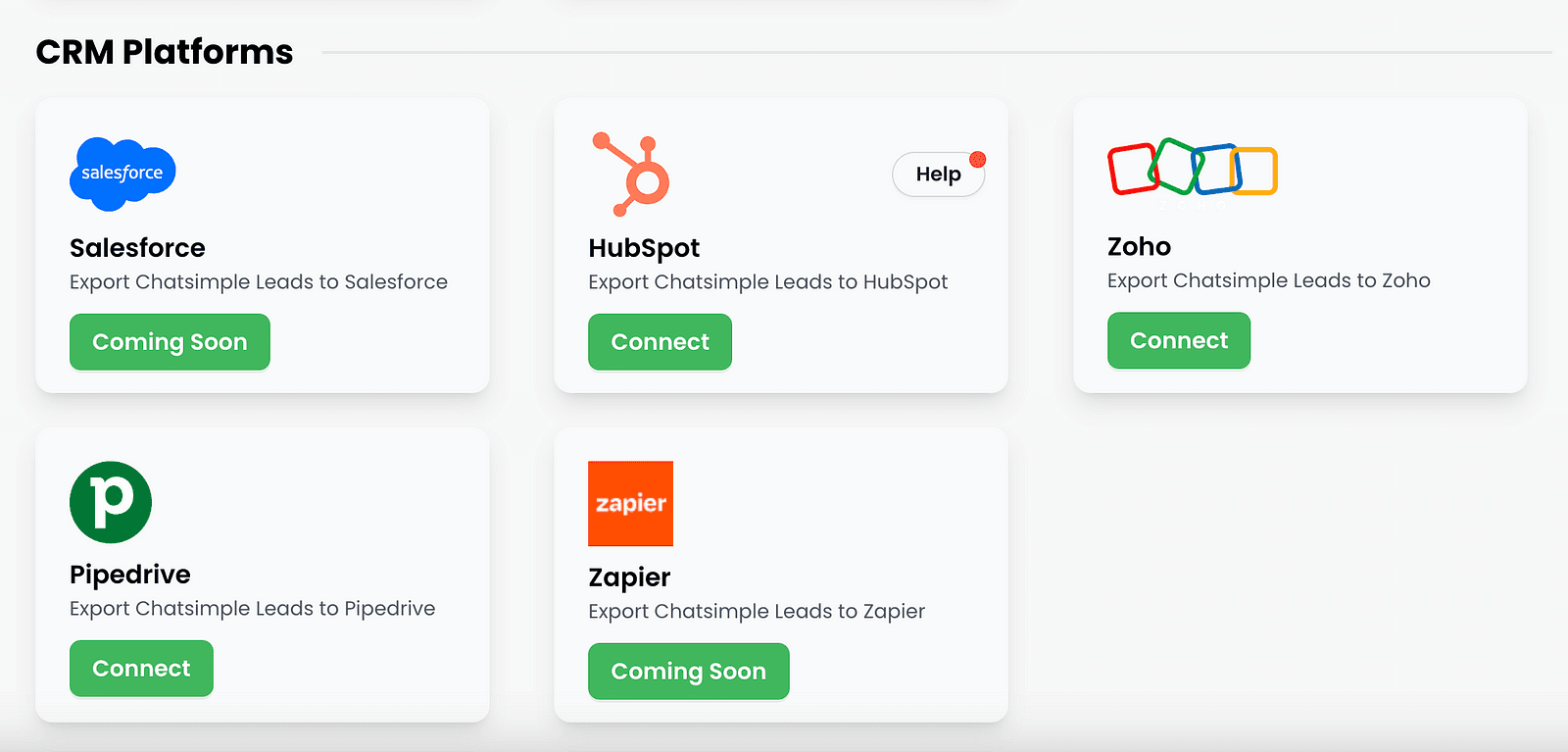 Speaking of CRMs you can connect, it supports a variety of popular ones, including Salesforce, HubSpot, Zoho, Pipedrive, and Zapier.