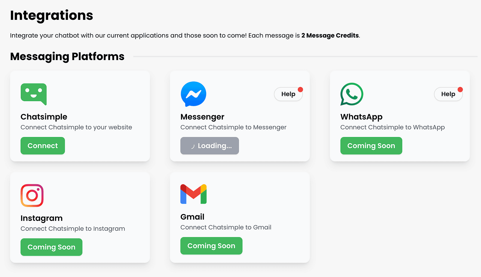 After you’ve created your account, you will be directed to the page where you can create your first chatbot.