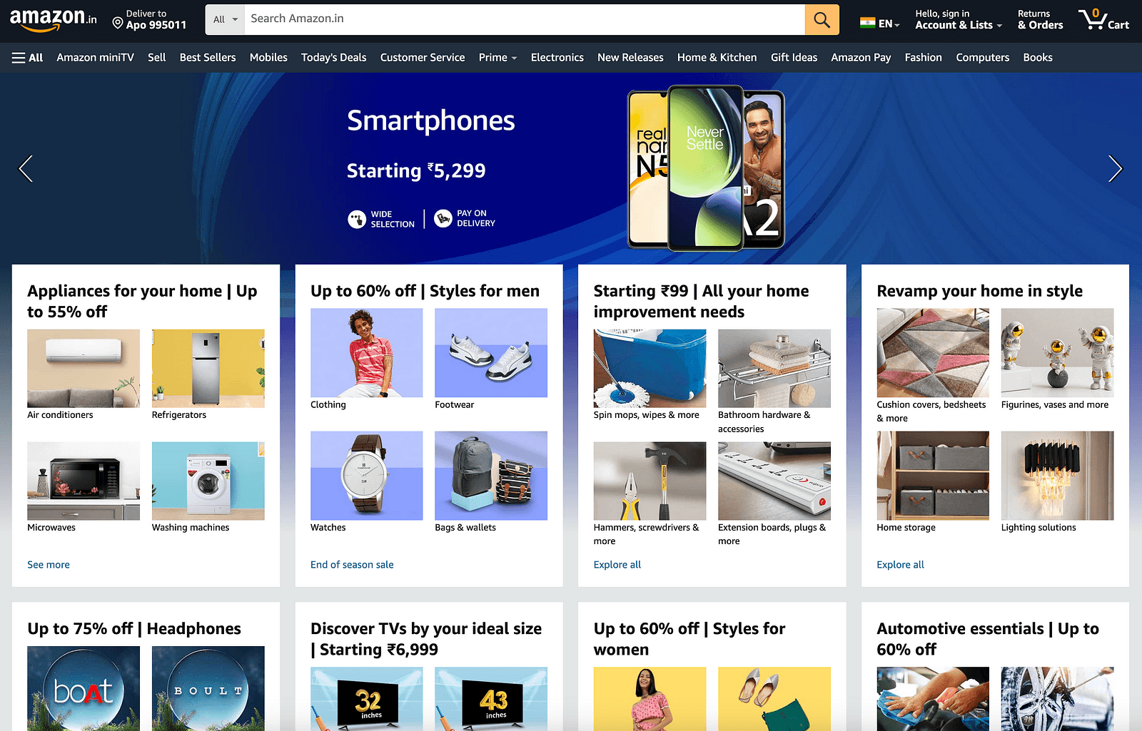 It can be overwhelming with lots of nav links, product listings, and ads (like Amazon Prime, and Amazon MiniTV), among others.