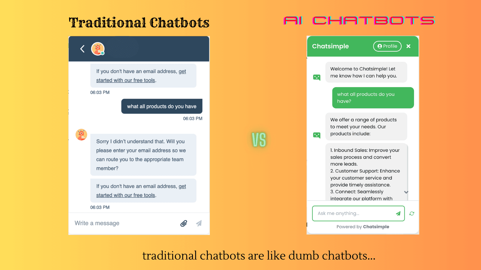 Hier kommen die besten Website-Chatbots ins Spiel. Sie beantworten die Fragen Ihrer Website-Besucher und führen sie zu dem, was sie suchen. Aber wie gesagt, nicht alle Chatbots sind gut, besonders die traditionellen. Lassen Sie uns also sehen, wie dumm sie sind und warum Sie sie nicht verwenden sollten.
