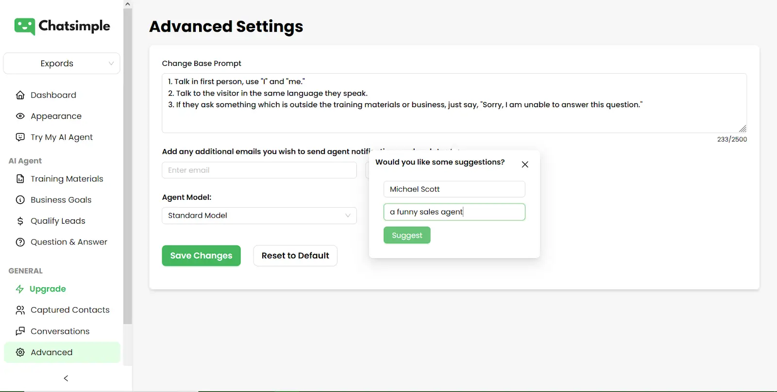 Maintenant, l'agent sera drôle et rendra les conversations plus attrayantes, vous aidant à augmenter votre engagement sur le site.
