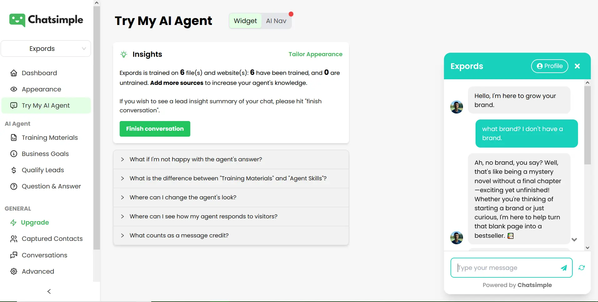 Allez simplement dans l'onglet Essayez mon agent IA et posez-lui quelques questions complexes. Cela vous aidera à comprendre où il doit être amélioré.